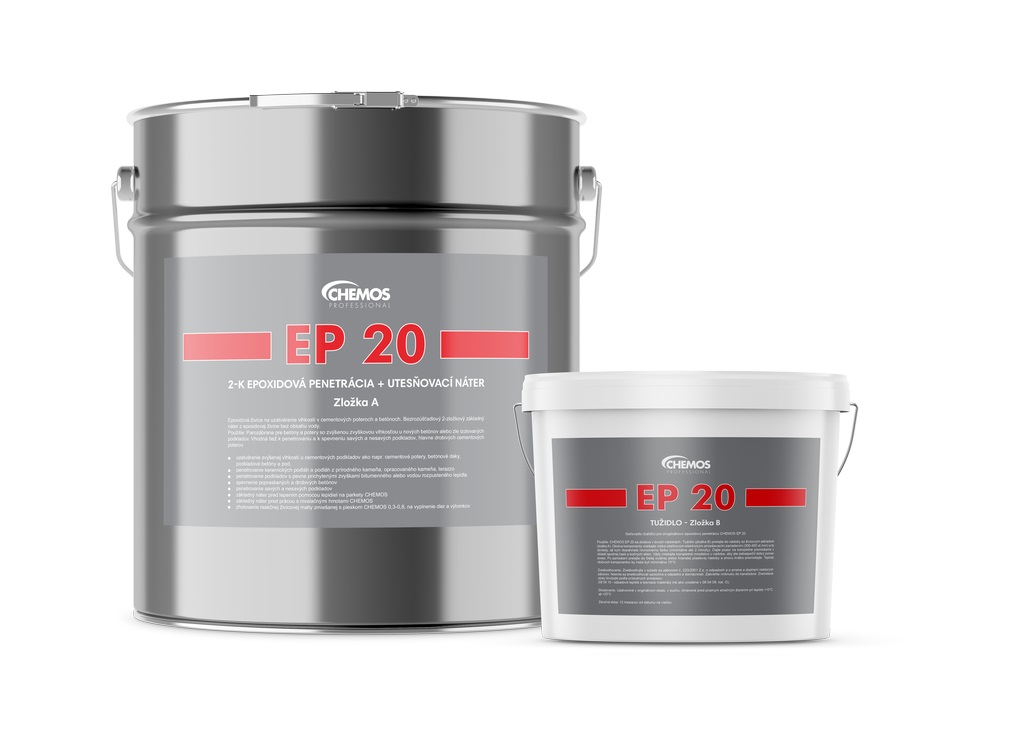 Oblast použití: Epoxidový penetrační nátěr Chemos EP 20 na podlahy a stěny z betonu, cementových potěrů, cementových omítek, litého asfaltu a jiných. Epoxidový nátěr zabraňuje prašnosti a drobení podkladu. Používá se jako penetrace savých i nesavých podkladů v exteriérech a interiérech před aplikací nátěrů, stěrek. Penetrace na beton dokonale snižuje savost podkladu a zlepšuje jeho přilnavost. Penetrace betonu perfektně připraví betonový podklad. Penetrační nátěr na beton jej zpevní a sníží prašnost podkladu. Epoxidový nátěr je dvousložkový roztok epoxidové pryskyřice. Taková penetrace slouží ke zpevnění a uzavírání vlhkosti v cementových potěrech a betonech. Podobně jako u jiných dvousložkových penetrací je třeba epoxidový nátěr před aplikací smíchat složku A s tužidlem (složka B). Penetrace zpevňuje a sjednocuje podklad, snižuje spotřebu a zvyšuje přilnavost. Penetrační nátěr Chemos EP 20 je vhodný pro cementové potěry, beton, stěny a podlahy. Penetrace na beton a jiné povrchy se provádí za pomoci stěrky.