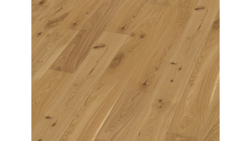 - Transparentní olej: zachovává přirozený vzhled dubu, podporuje teplý a autentický dojem dřeva a umožňuje lokální oživení povrchu.