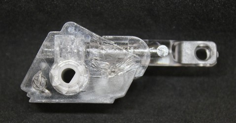 na očko tohoto dílu je nasazen háček interiérové tyčky a otáčením tyčky se naklápí lamely žaluzie